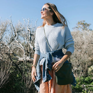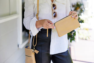 Black pebbled leather Berlin Clutch wallet women placing inside Singapore Crossbody bag