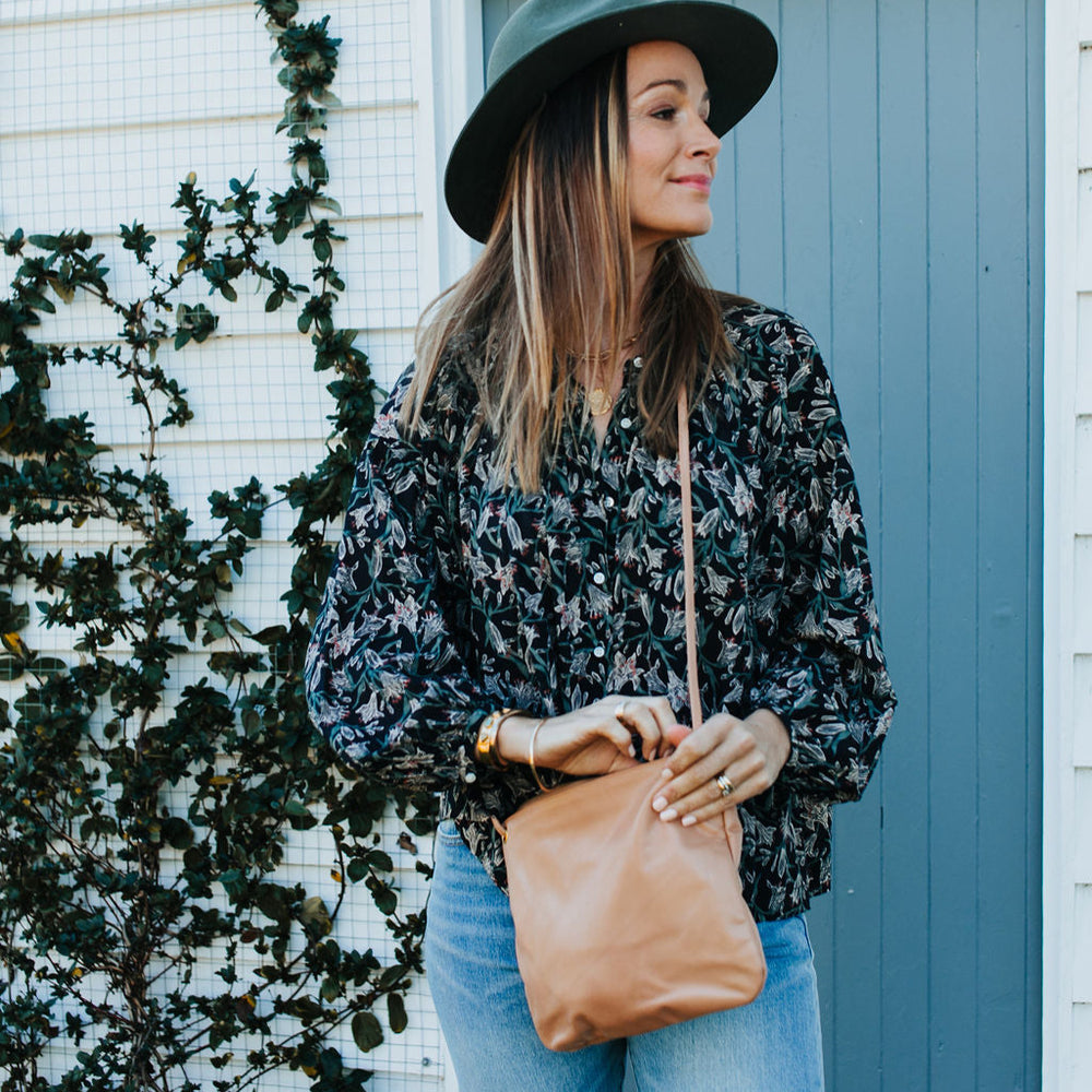 Its adjustable shoulder strap (by hidden toggle) offers versatile wear, either crossbody or over-the-shoulder.