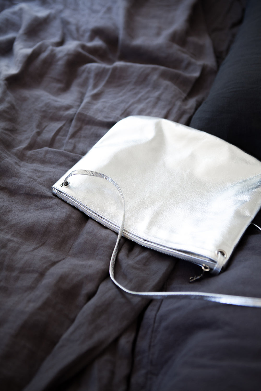 Its adjustable shoulder strap (by hidden toggle) offers versatile wear, either crossbody or over-the-shoulder.