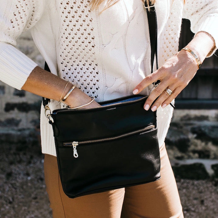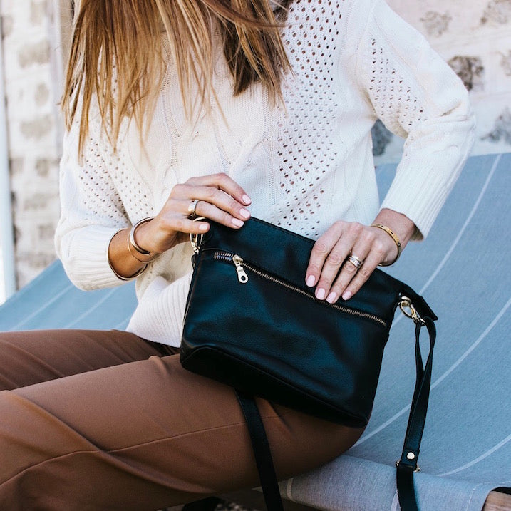 Mini Rome is a chic little bag with a zip closure at the top, front feature zip pocket as well as a long detachable strap. Inside is a large zip pocket and our signature chambray lining, makes finding everything inside super easy!