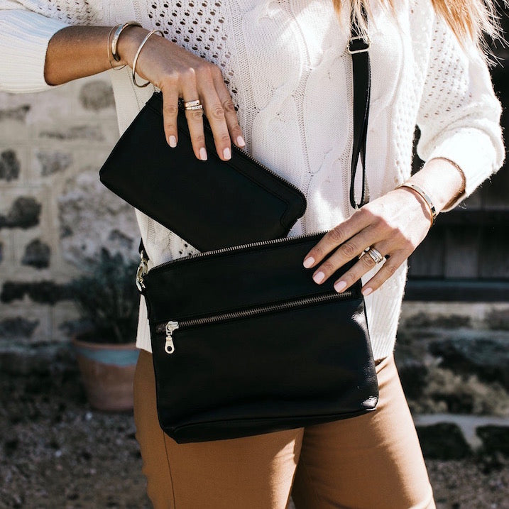 You can wear this style over your shoulder, across your body or take the strap off for an oversized clutch.