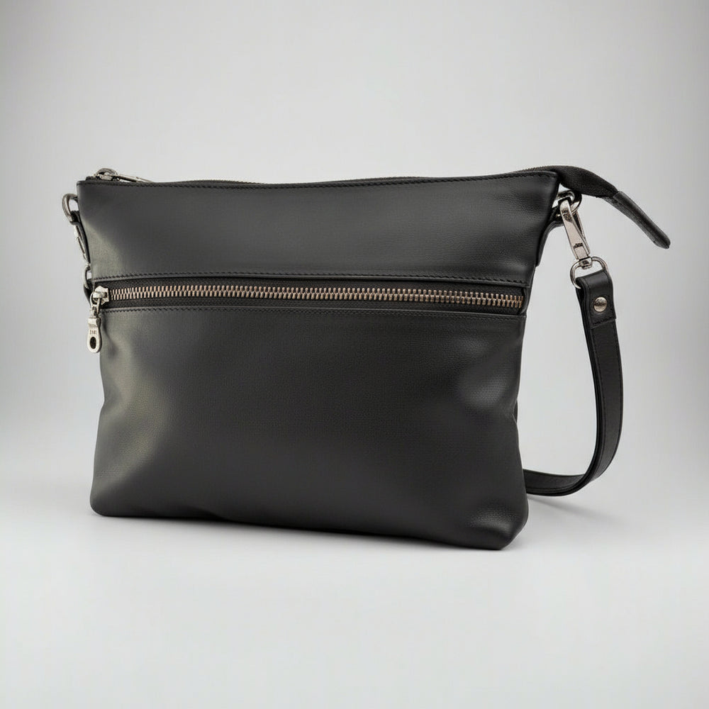 Black soft leather featuring soft grain to add texture. (Available in smooth - request at checkout)