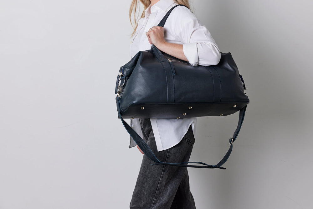 Our brand new leather Sorrento Weekender bag in a rich navy hue combines style and functionality to be your perfect travel companion. Whether you're going overseas for a week or heading away for the weekend, the unisex Sorrento Weekender exudes elegance while keeping every necessity close at hand and your clothes neatly organised.