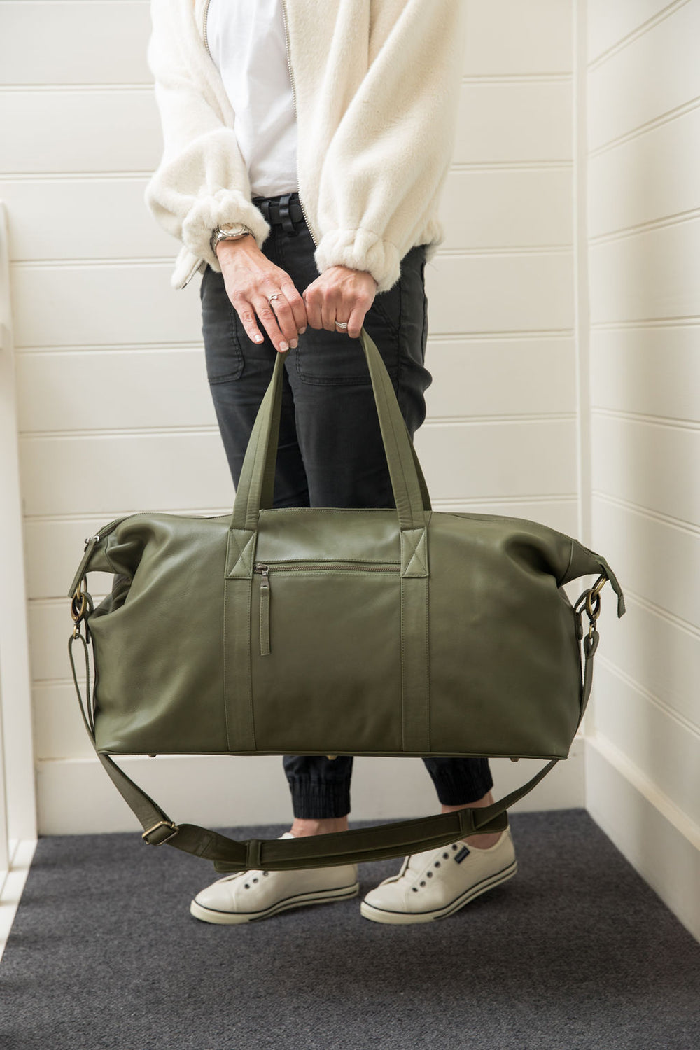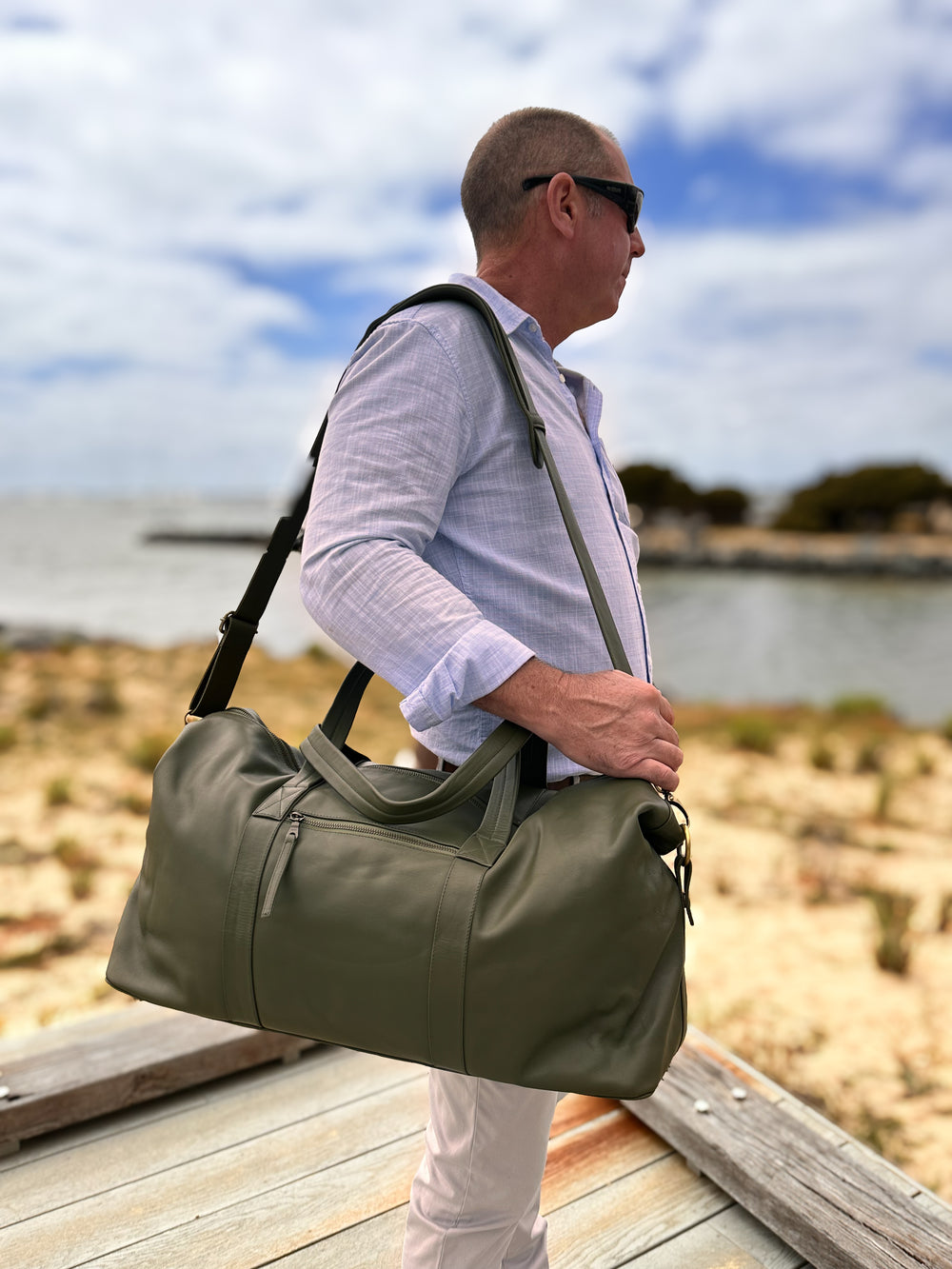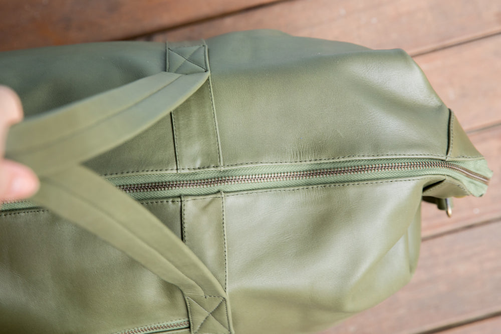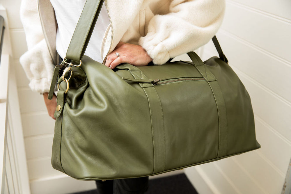 Our brand new leather Sorrento Weekender bag in a rich khaki green combines style and functionality to be your perfect travel companion. Whether you're going overseas for a week or heading away for the weekend, the unisex Sorrento Weekender exudes elegance while keeping every necessity close at hand and your clothes neatly organised.